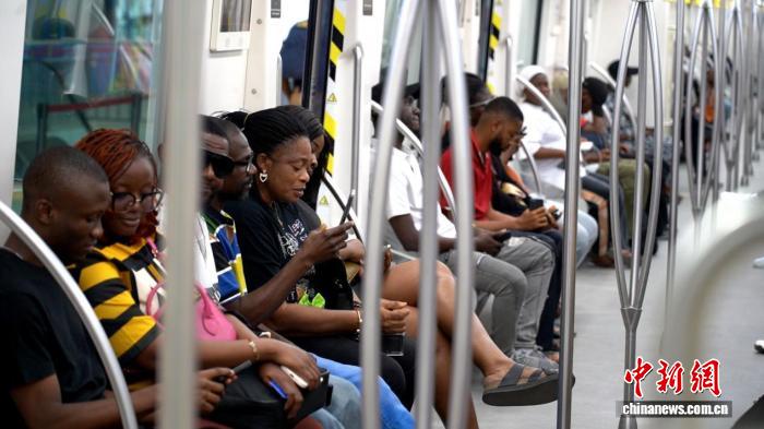 7月28日,乘客乘坐尼日利亞拉各斯輕軌藍(lán)線。中新社記者 呂楊 攝