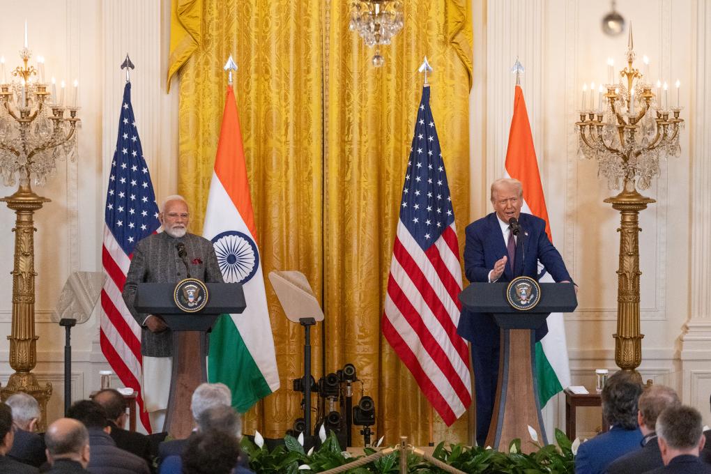 2月13日,美國總統(tǒng)特朗普(右)與到訪的印度總理莫迪在華盛頓白宮出席聯(lián)合記者會。新華社記者胡友松攝