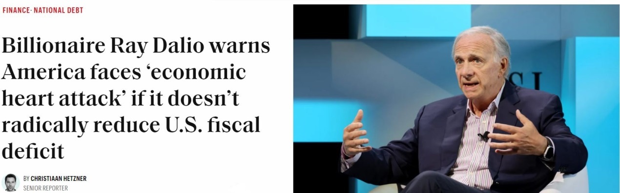 美國橋水基金創(chuàng)始人達利歐此前更是警告,如果不能有效控制財政赤字和債務(wù)規(guī)模,美國經(jīng)濟遲早會“心臟病發(fā)作”。