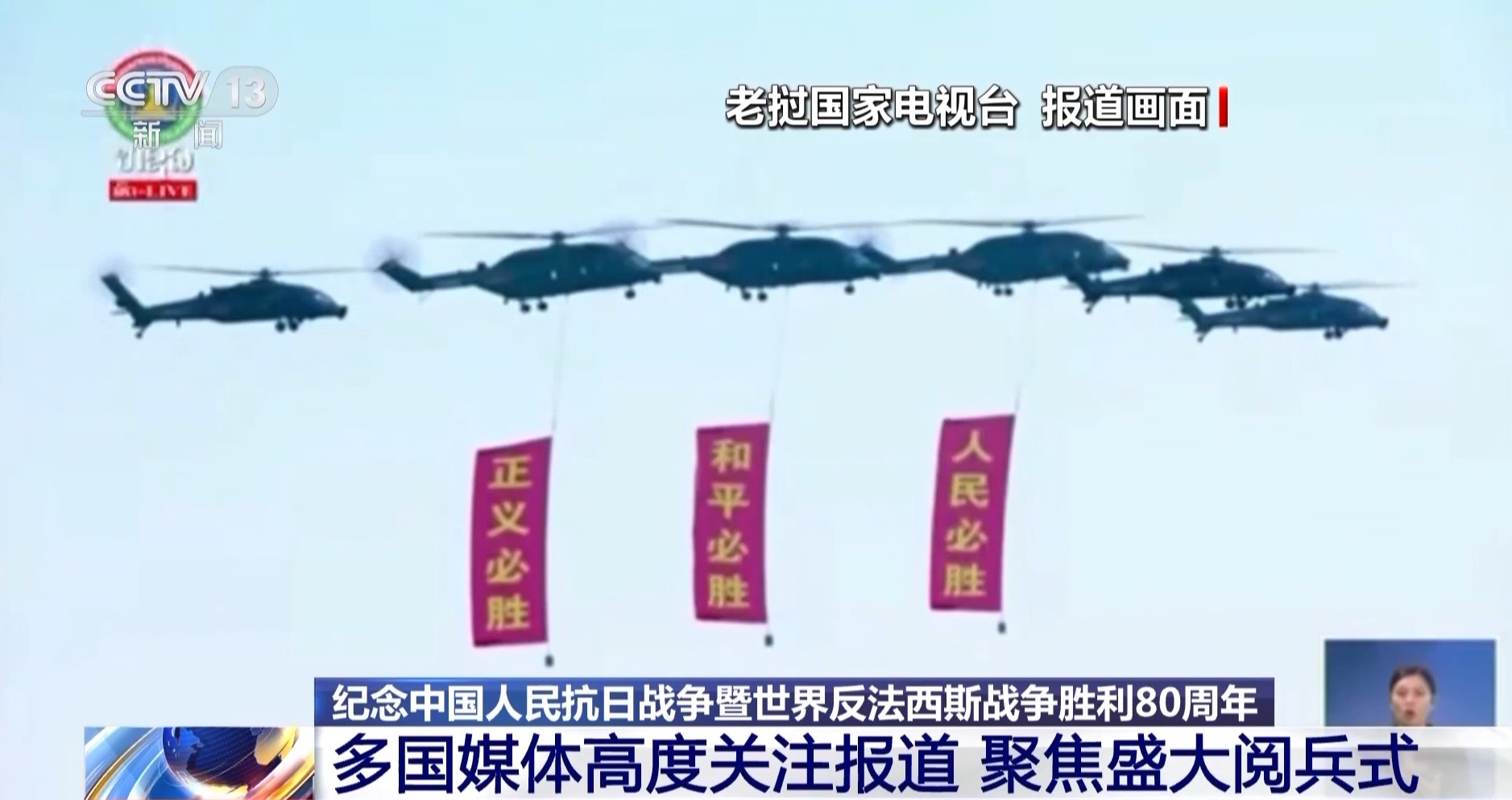 老撾國(guó)家電視臺(tái)在黃金時(shí)段《晚間新聞》中頭條報(bào)道了紀(jì)念中國(guó)人民抗日戰(zhàn)爭(zhēng)暨世界反法西斯戰(zhàn)爭(zhēng)勝利80周年活動(dòng)。報(bào)道指出,此次活動(dòng),紀(jì)念中國(guó)軍隊(duì)和人民在第二次世界大戰(zhàn)期間與世界各國(guó)一道,反對(duì)外來(lái)侵略并贏得勝利,獲得自由與獨(dú)立,為中國(guó)和世界各國(guó)帶來(lái)繁榮與昌盛。