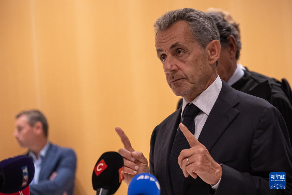 9月25日,在法國(guó)巴黎,法國(guó)前總統(tǒng)薩科齊在庭審后接受媒體采訪。新華社發(fā)(奧雷利安·莫里薩爾攝)