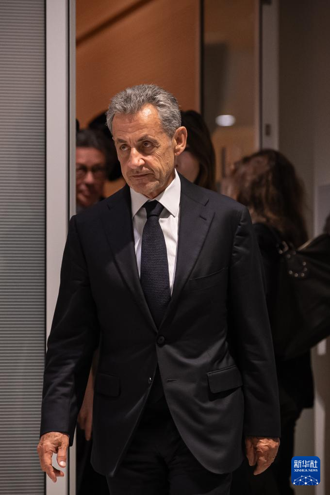 9月25日,在法國(guó)巴黎,法國(guó)前總統(tǒng)薩科齊在庭審后離開。新華社發(fā)(奧雷利安·莫里薩爾攝)