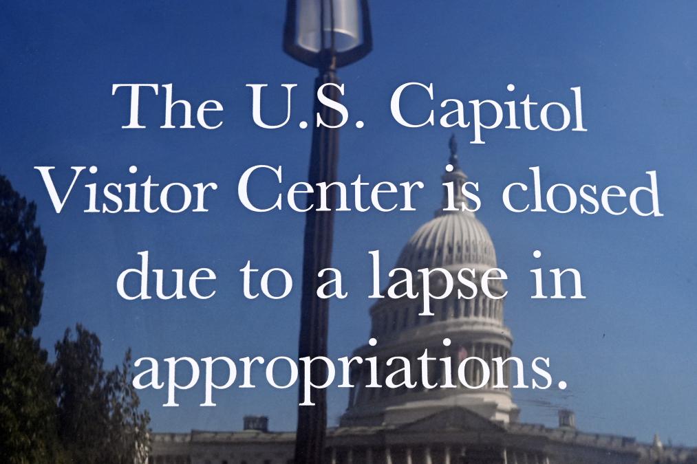 10月1日,在美國華盛頓的美國國會大廈前,公告牌顯示國會大廈游客中心關(guān)閉。新華社記者 李睿 攝
