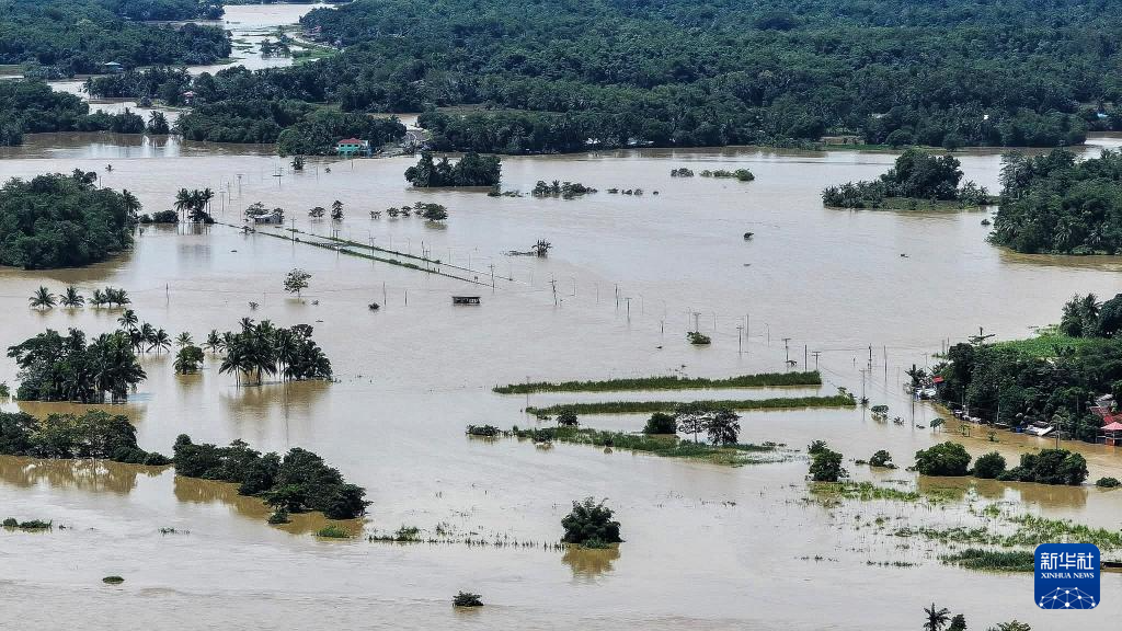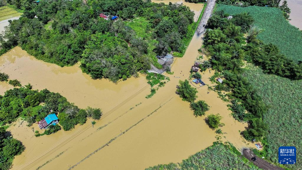 這是10月19日在菲律賓卡皮斯省拍攝的被洪水淹沒的道路。新華社發(fā)(西米沙鄢區(qū)公共工程與公路部供圖)