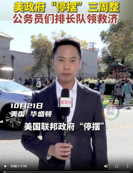21日,美國聯(lián)邦政府“停擺”已整整三周。當天午間,新華社記者在首都華盛頓東郊一處救濟點看到,被拖欠工資的聯(lián)邦雇員排起了數(shù)十米長隊,領取免費食品以解“燃眉之急”。