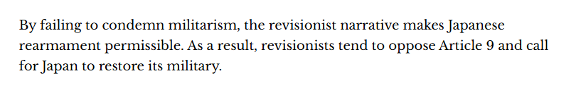 伴隨政治右傾,歷史修正主義敘事在日本社會(huì)不斷蔓延。該文指出,原本反省軍國(guó)主義罪行的戰(zhàn)爭(zhēng)敘述正受到挑戰(zhàn),部分勢(shì)力試圖將侵略戰(zhàn)爭(zhēng)披上“解放亞洲”的道德外衣,將日本描繪成西方帝國(guó)主義下的被迫“追隨者”。文章認(rèn)為,這些舉動(dòng)的核心目的,則是為日本重整軍備掃清歷史和心理障礙。