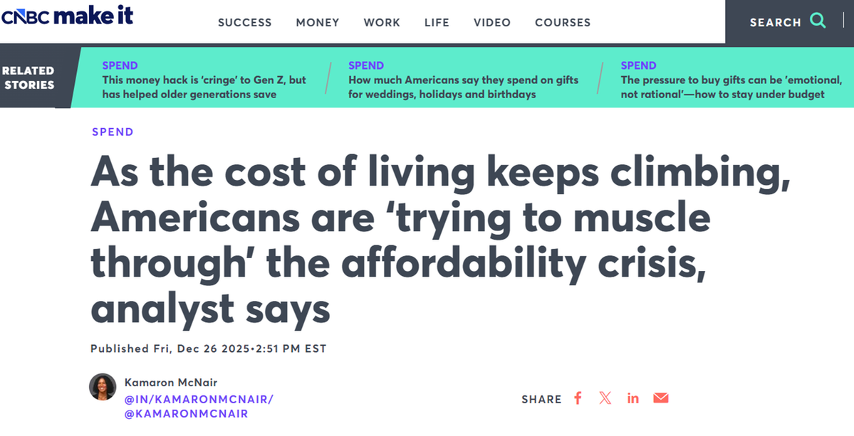 2025年末,“可負(fù)擔(dān)性危機(jī)”(affordability crisis)成為美國主流媒體焦點(diǎn)。美國挑起的貿(mào)易戰(zhàn),其自傷效應(yīng)在美國民眾的生活成本上體現(xiàn)得淋漓盡致。