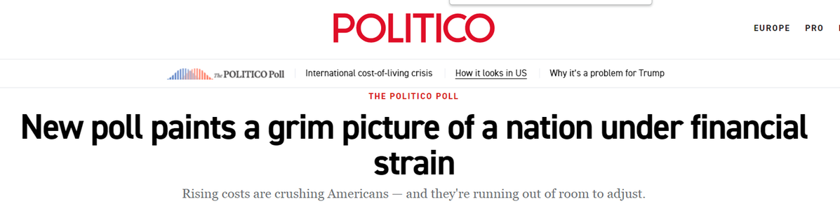 美國政客新聞網(wǎng)(Politico)12月發(fā)布的最新民調(diào)勾勒出一幅更為嚴(yán)峻的圖景:近半數(shù)美國人難以負(fù)擔(dān)雜貨、公用事業(yè)、醫(yī)療、住房和交通;因顧忌成本,27%的人不再體檢,23%的人跳過處方藥;55%的民眾將高物價(jià)歸咎于美國政府。即使在其支持者中,也有21%認(rèn)為關(guān)稅目前損害經(jīng)濟(jì)。