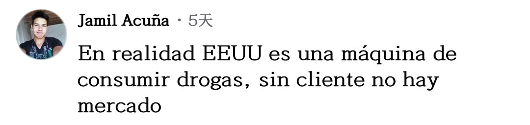 網(wǎng)友胡安喬·奧維多一針見(jiàn)血:“停止(毒品)消費(fèi)吧,如果沒(méi)人消費(fèi),生產(chǎn)必然下降。莫非特朗普和他的團(tuán)隊(duì)是美國(guó)國(guó)內(nèi)毒品生意的受益者?”