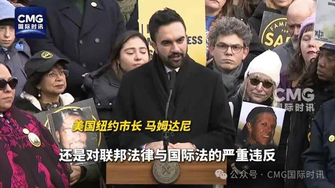 紐約市長(zhǎng)馬姆達(dá)尼同日發(fā)表講話(huà),強(qiáng)調(diào)自己對(duì)于此次軍事行動(dòng)的反對(duì),表示美國(guó)此舉不單是圖謀顛覆他國(guó)政權(quán),同時(shí)也是對(duì)美國(guó)聯(lián)邦法律與國(guó)際法的嚴(yán)重違反。