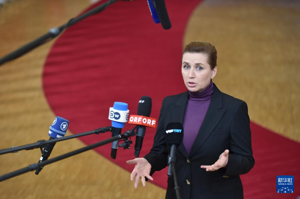 1月22日,在比利時(shí)布魯塞爾,丹麥?zhǔn)紫喔ダ诐衫锟松瓍⒓託W盟緊急峰會(huì)前強(qiáng)調(diào),丹麥?zhǔn)侵鳈?quán)國家,“主權(quán)問題不容談判”。新華社發(fā)(歐盟供圖)