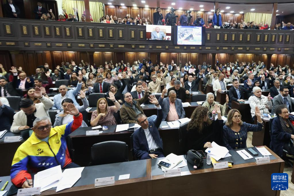 1月29日,在委內(nèi)瑞拉首都加拉加斯,議員們在委內(nèi)瑞拉立法機構全國代表大會例行會議上舉手表決。新華社發(fā)(委內(nèi)瑞拉全國代表大會供圖)