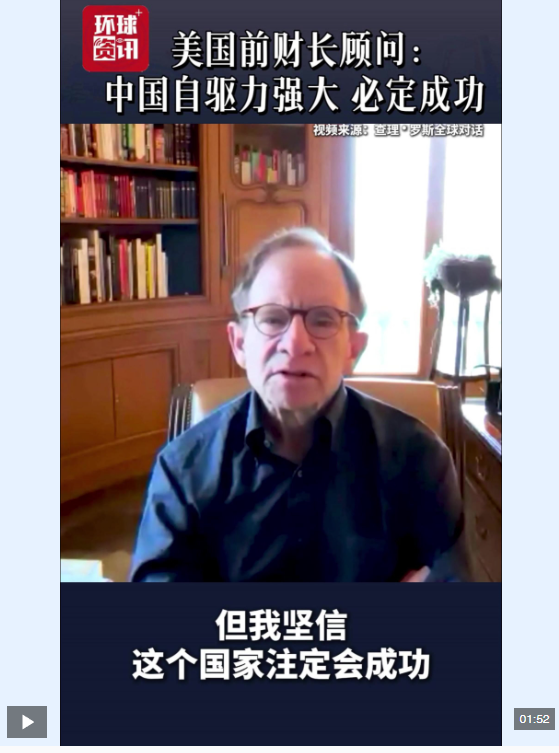近日,美國前財政部長顧問史蒂文·拉特納在接受美國播客節(jié)目《查理·羅斯全球?qū)υ挕窌r表示,近20年來中國經(jīng)濟的高速發(fā)展不僅源于經(jīng)濟因素,更得益于中國人民追求成功的強大自驅(qū)力。他指出,這種難以用經(jīng)濟模型量化的拼搏精神深刻塑造了國家的經(jīng)濟前景,并認為中國必定會成功。