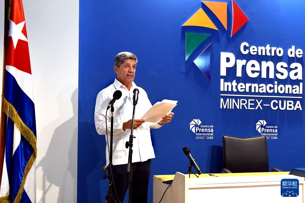 2月26日,在古巴首都哈瓦那,古巴外交部副部長德科西奧在記者會上通報有關(guān)情況。新華社發(fā)(華金·埃爾南德斯攝)