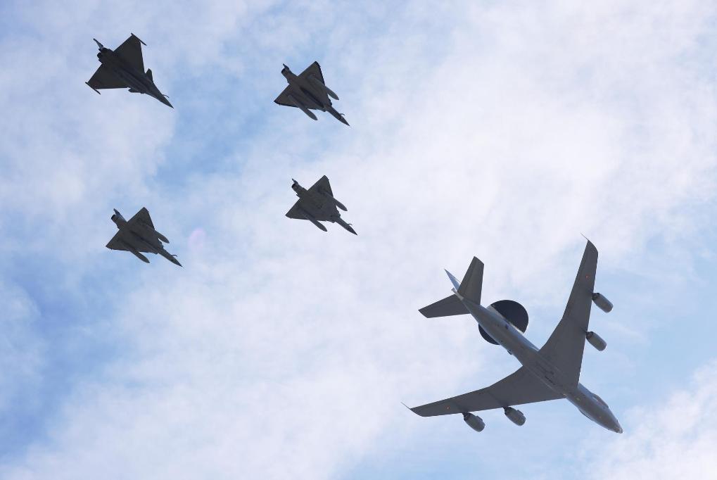 2022年7月14日,法國(guó)空軍飛機(jī)參加在法國(guó)巴黎舉行的國(guó)慶閱兵式。新華社記者高靜攝