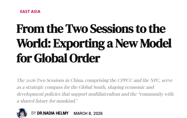 歐洲《現(xiàn)代外交》網(wǎng)站3月8日刊載埃及本尼蘇伊夫大學(xué)副教授納迪亞·赫爾米博士的評(píng)論文章稱,2026年中國兩會(huì)為全球南方國家提供了戰(zhàn)略指南,會(huì)議制定了支持多邊主義和推動(dòng)構(gòu)建人類命運(yùn)共同體的經(jīng)濟(jì)發(fā)展政策。會(huì)議推動(dòng)南南合作,促進(jìn)可持續(xù)發(fā)展,并提供了基于伙伴關(guān)系和互利共贏的全球治理新模式。