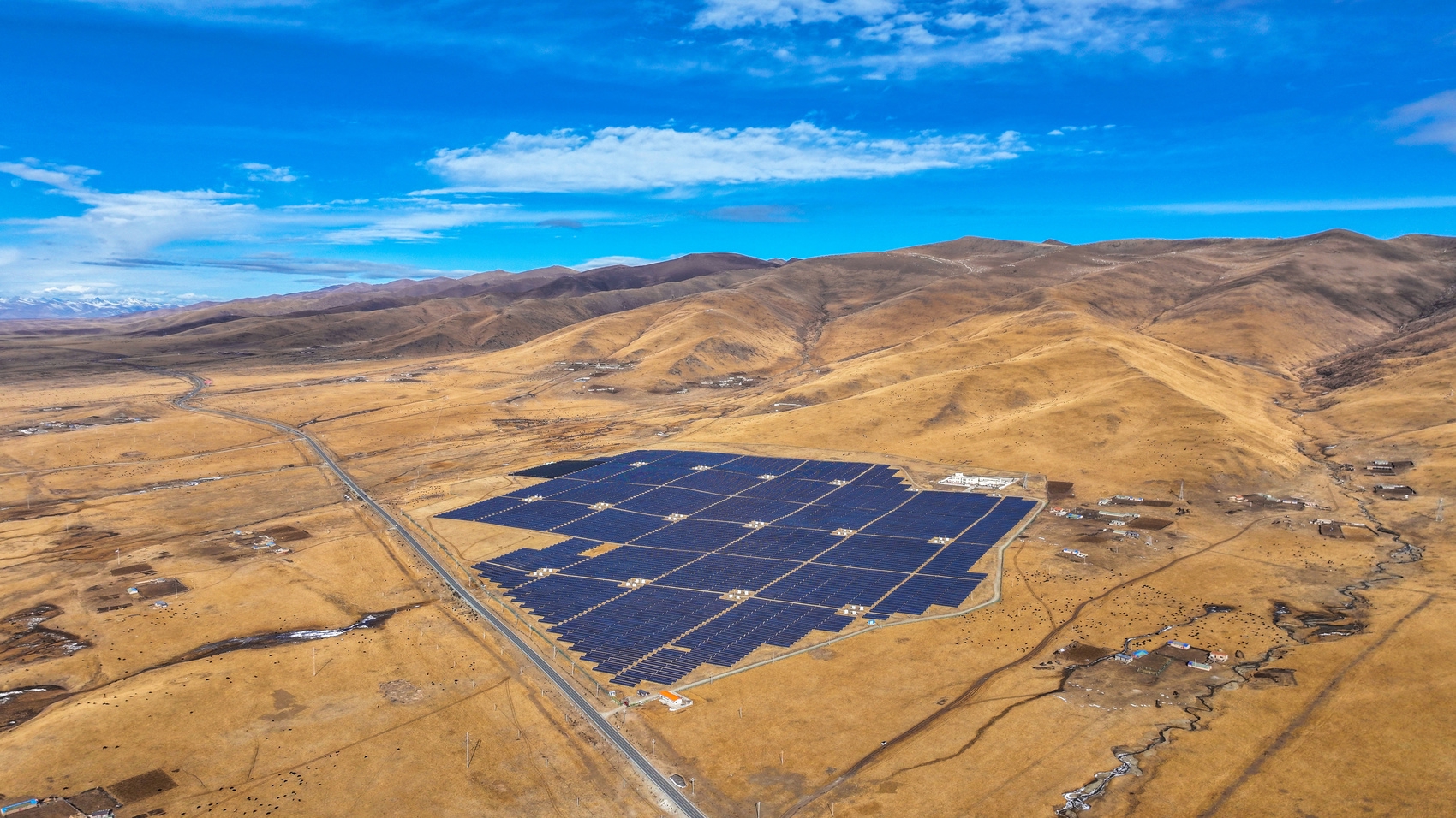 阿壩州阿壩縣蘭措瑪光伏電站航拍畫面。嚴易程 攝