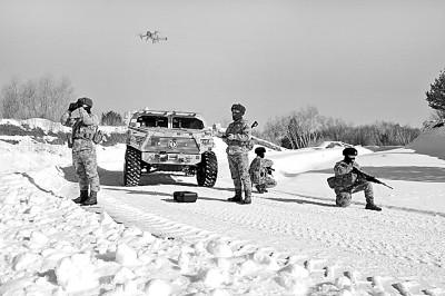 陸軍某旅三角山邊防連執(zhí)勤組外出巡邏時(shí)使用無人機(jī)偵察。新華社發(fā)