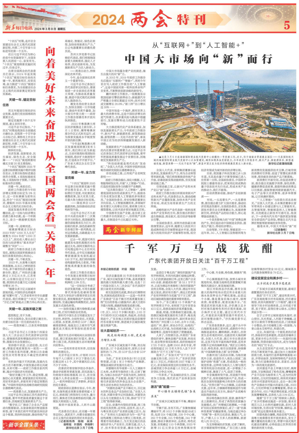 “河源的縣域產(chǎn)業(yè)不斷壯大,百億級(jí)水飲料及食品產(chǎn)業(yè)加快打造。”全國人大代表、河源市委書記何國森說,河源堅(jiān)決以頭號(hào)力度推進(jìn)頭號(hào)工程,推動(dòng)“百千萬工程”取得新突破。