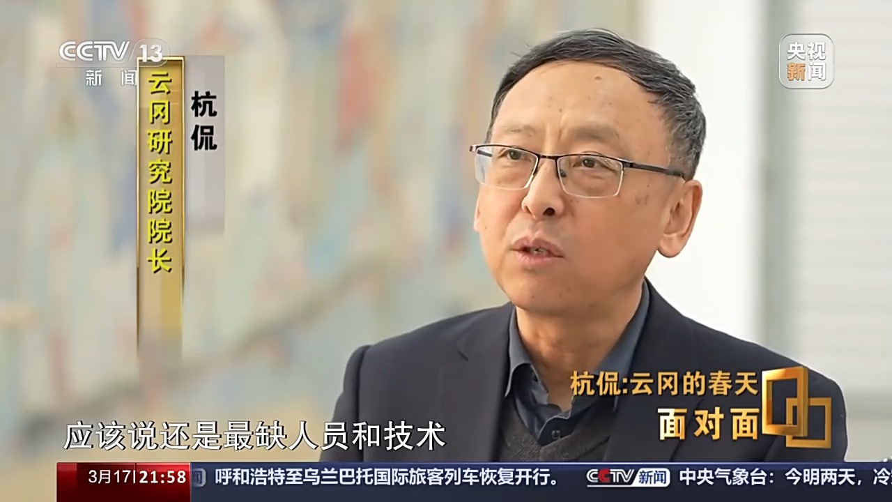 云岡研究院院長(zhǎng) 杭侃:應(yīng)該說還是最缺人員和技術(shù),因?yàn)槲覀冞^去老是說資金的問題,但是現(xiàn)在國(guó)家經(jīng)濟(jì)發(fā)展了,資金我們倒是基本上有保證了。但是我們現(xiàn)在對(duì)于技術(shù)上的要求很高,過去我們把一些相對(duì)比較好處理的,比如說危巖體加固這一部分工作給做了,但是現(xiàn)在留下來的比如說像風(fēng)化這些問題那是一直頭疼,而且也不光是我們一個(gè)石窟,是普遍面臨這樣的問題。