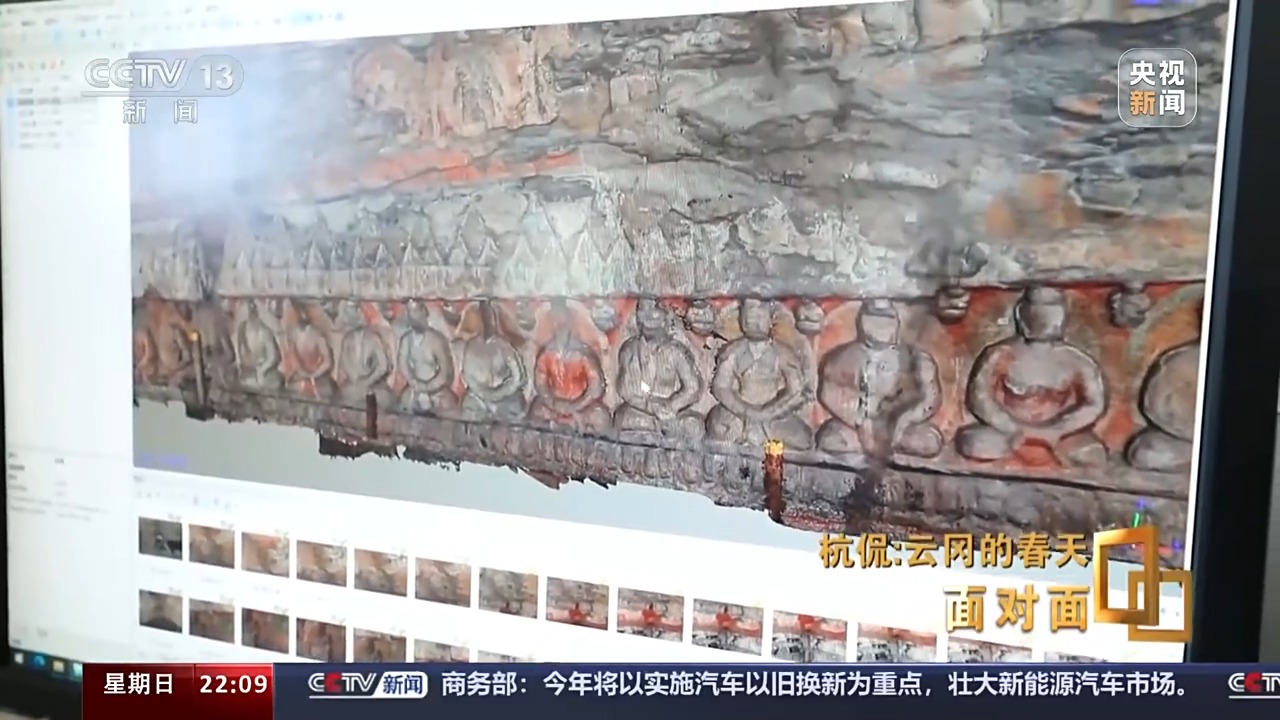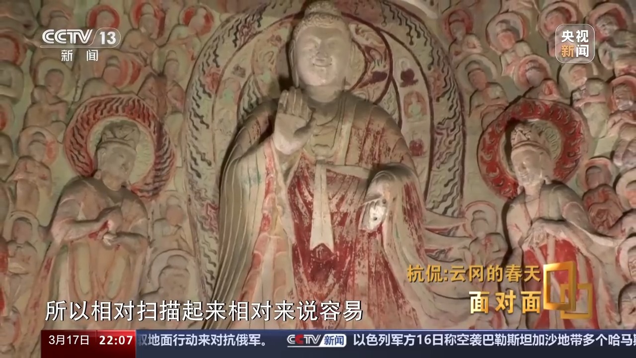 杭侃:因?yàn)槎鼗推鸩皆?,到現(xiàn)在都是我們學(xué)習(xí)的榜樣。但是敦煌它正是因?yàn)槠鸩皆?,可能我們現(xiàn)在技術(shù)迭代比較快。所以從技術(shù)迭代的角度來說我們并不落后。我們現(xiàn)在的精度已經(jīng)到了0.03毫米了,但是那樣需要的算力是非常大的。我們這有一個(gè)超算中心,超算中心是什么概念?就是你看到的一個(gè)洞窟的運(yùn)算能力,要和一個(gè)中等城市的,我們叫智慧城市,那個(gè)量是一樣的。云岡它是一個(gè)皇家工程,所以那個(gè)像都特別大,敦煌它很多洞窟比較小,另外敦煌它的壁畫非常精彩,但是壁畫是二維的,所以相對(duì)掃描起來相對(duì)來說容易,但是我們這個(gè)地方它一個(gè)是大,第二個(gè)就是雕刻的手法多。所以像你看到的第六窟,我們到現(xiàn)在都沒有拿得出來,大家都能認(rèn)可的采集方案。