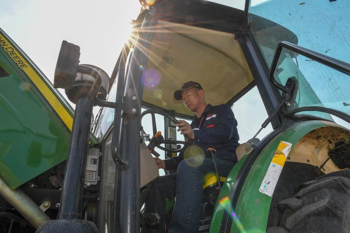 4月2日,在吉林省公主嶺市范家屯鎮(zhèn)乾程農(nóng)民專業(yè)合作社,農(nóng)民駕駛農(nóng)機整理耕地。