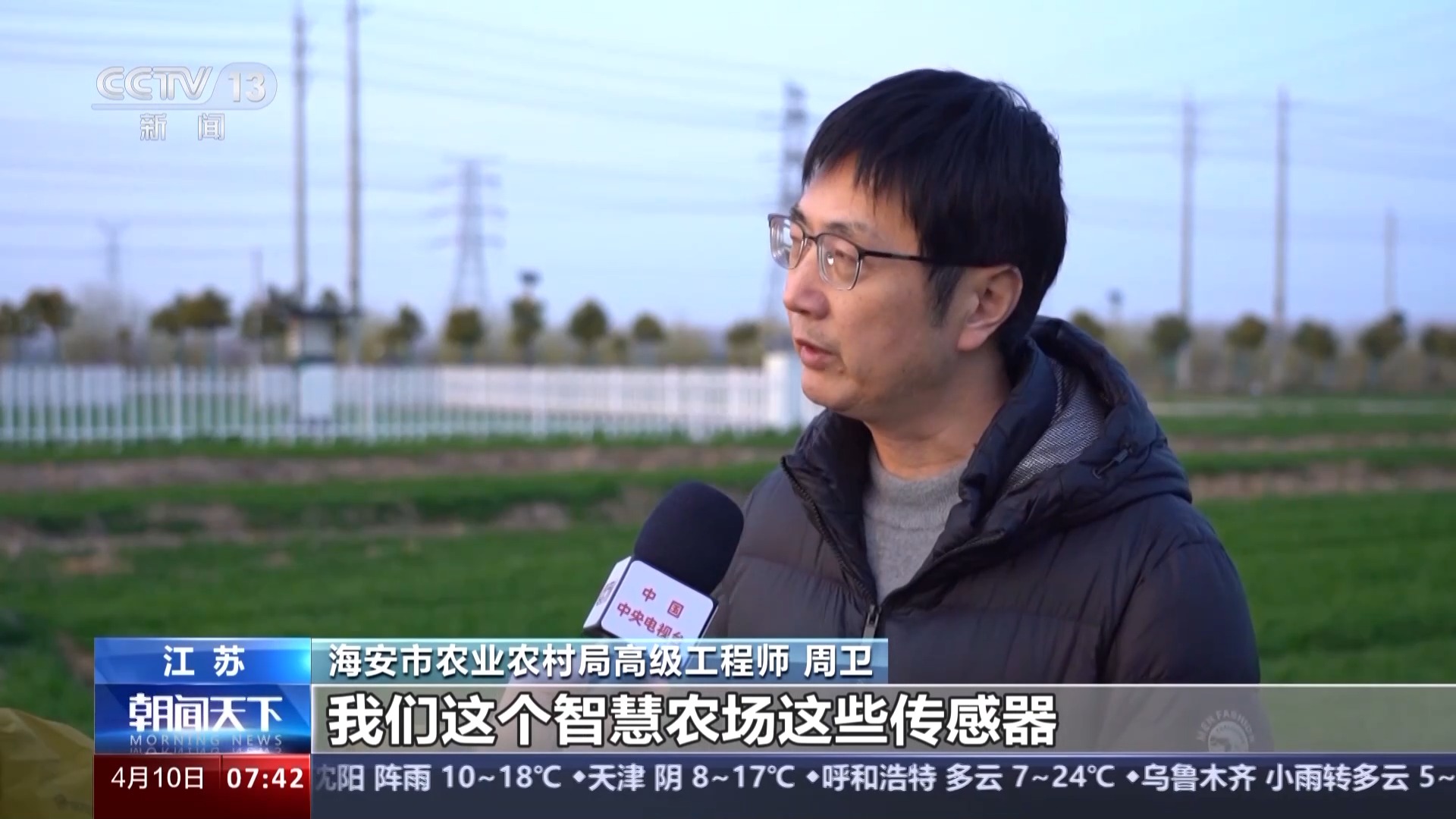 海安市農(nóng)業(yè)農(nóng)村局高級工程師 周衛(wèi):國家就把整個渠道、道路、灌溉系統(tǒng)修好,我們這個智慧農(nóng)場這些傳感器基本上都是國家補貼的。