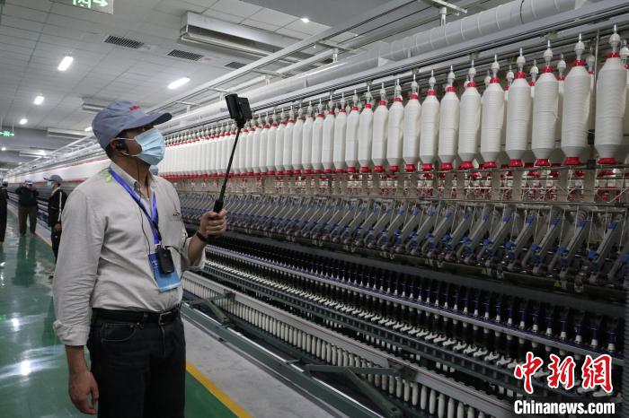 紗梭飛旋,機器輪轉,潔白的棉花紡成一簇簇紗線。在新疆尉犁縣利華紡織有限公司紡紗廠,澳大利亞“能力新聞網(wǎng)”總編尼古拉斯·斯圖爾特緩緩將指尖觸上待加工的棉團,短暫停留后,走向下一道工序參觀。