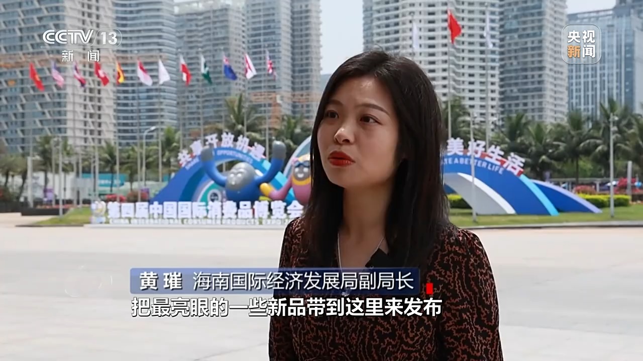 海南國(guó)際經(jīng)濟(jì)發(fā)展局副局長(zhǎng) 黃璀:我們希望更多全球品牌把最亮眼的一些新品帶到這里來發(fā)布,更好跟中國(guó)消費(fèi)市場(chǎng)進(jìn)行對(duì)接。當(dāng)然我們也希望中國(guó)的消費(fèi)精品,通過消博會(huì)新品發(fā)布舞臺(tái),讓全世界看到,通過海南自貿(mào)港、通過消博會(huì)這個(gè)平臺(tái)走向全球。