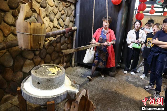 中新網(wǎng)衢州4月25日電(邵燕飛)“今年以來(lái),豆腐工坊接待了許多來(lái)自新加坡、馬來(lái)西亞等國(guó)家和地區(qū)的游客,他們參觀完后,感到非常驚訝。因?yàn)樗麄儚奈戳私膺^(guò)如此全面的豆腐文化,對(duì)我們的古法技藝十分認(rèn)可。”4月25日,在浙江衢州江山廿八都鎮(zhèn),廿八都豆腐工坊負(fù)責(zé)人張君君受訪時(shí)說(shuō)。