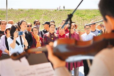 中國交響樂團(tuán)在五家渠市青格達(dá)湖開展弦樂四重奏“快閃”活動。