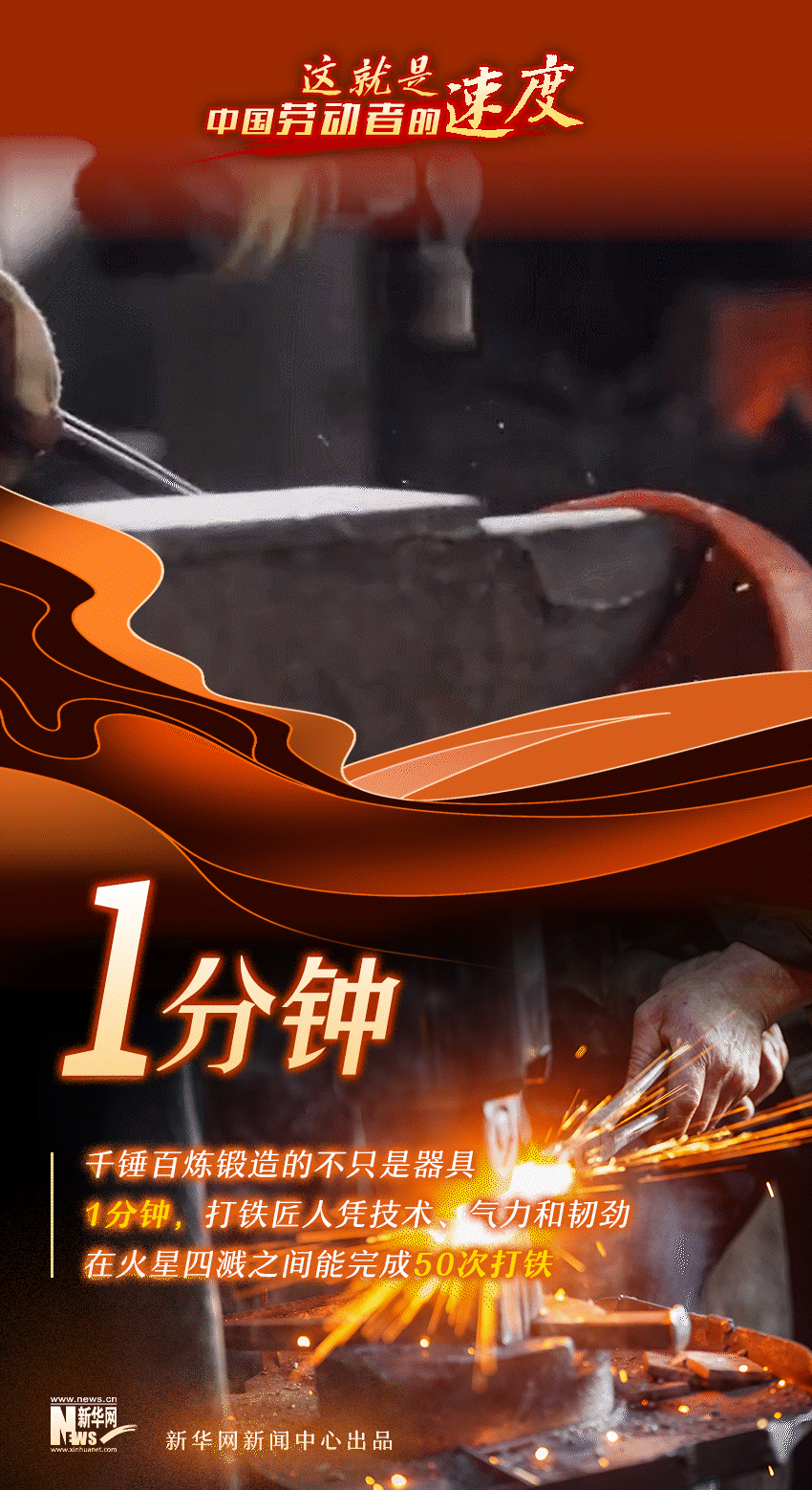 1分鐘,在火星四濺的環(huán)境里,打鐵匠人能打鐵50次;