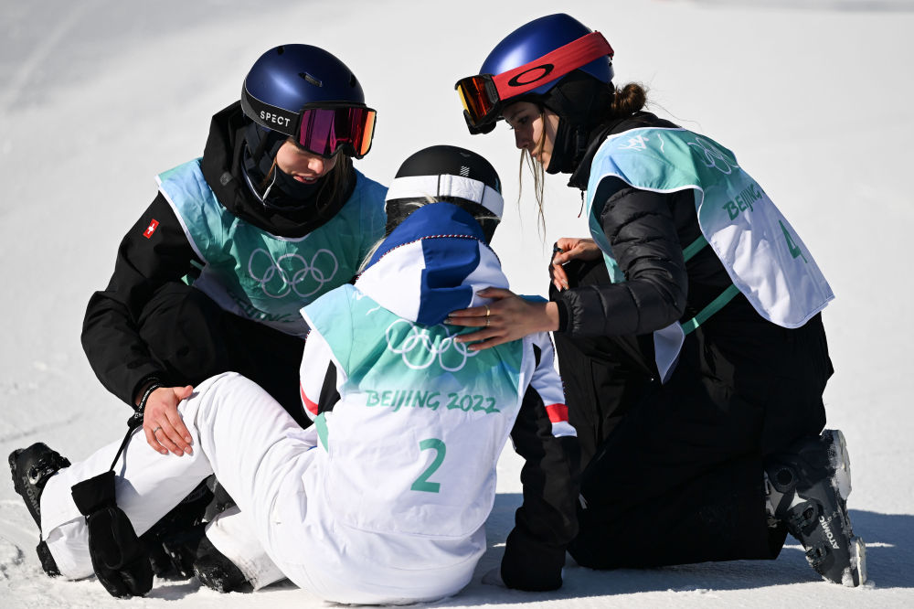 ↑2022年2月8日,中國選手谷愛凌(右)和瑞士選手瑪?shù)贍柕隆じ窭啄拢ㄗ螅┰诒本?022年冬奧會自由式滑雪女子大跳臺決賽后安慰法國選手泰絲·勒德。奧運賽場外中法體育界展開多領(lǐng)域交流與合作2011年6月法網(wǎng)賽場上演中國奇跡29歲的中國姑娘李娜成為第一個奪得網(wǎng)球大滿貫賽事單打冠軍的亞洲人