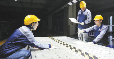 江蘇省蘇州高新區(qū)蘇高新股份下屬企業(yè)世力源總工程師溫晶晶(右一)與同事開展設(shè)計(jì)試驗(yàn)。 本報(bào)記者 王偉健攝