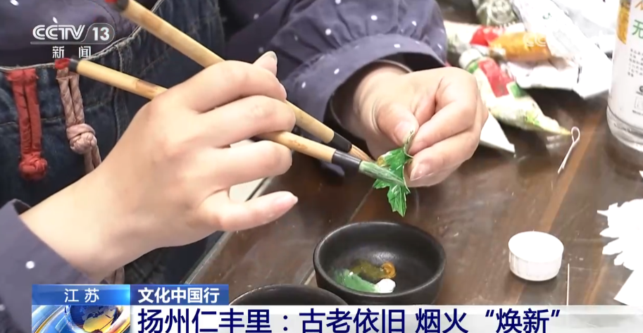 總臺央視記者 楊威:將傳統(tǒng)的非遺技能進(jìn)行適合現(xiàn)代生活的活化式展現(xiàn),是仁豐里非遺呈現(xiàn)的一大特色。像作為江蘇省級非遺的揚(yáng)州通草花制作技藝,已經(jīng)有了超過兩千年的歷史,以前只是專攻于宮廷,如今在這里您可以近距離地觀賞手藝人們現(xiàn)場制作的技巧,也可以親自上手做一個屬于自己的通草花帶回家。