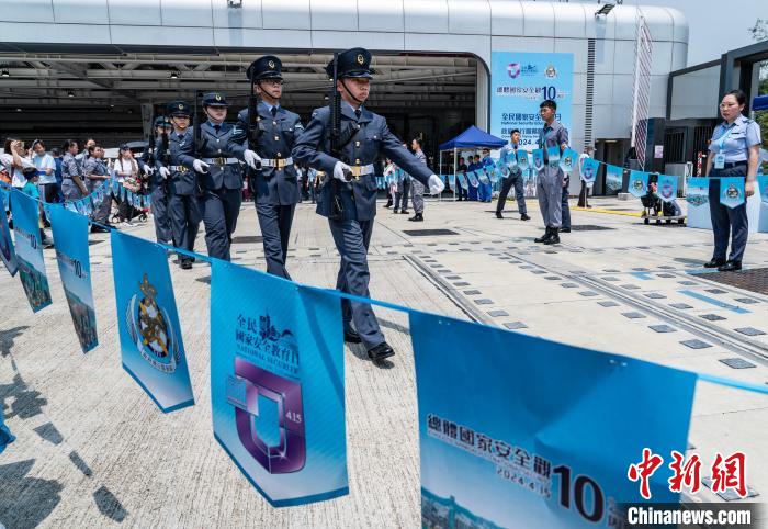 4月13日,香港特區(qū)政府保安局下轄的各紀(jì)律部隊(duì)舉行“全民國(guó)家安全教育日”開放日活動(dòng)。圖為香港航空青年團(tuán)成員在政府飛行服務(wù)隊(duì)開放日活動(dòng)上展示中式步操。(資料圖片) 中新社記者 侯宇 攝