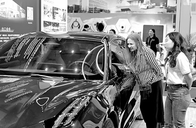采購(gòu)商在第135屆廣交會(huì)上參觀新能源汽車(chē)。新華社發(fā)