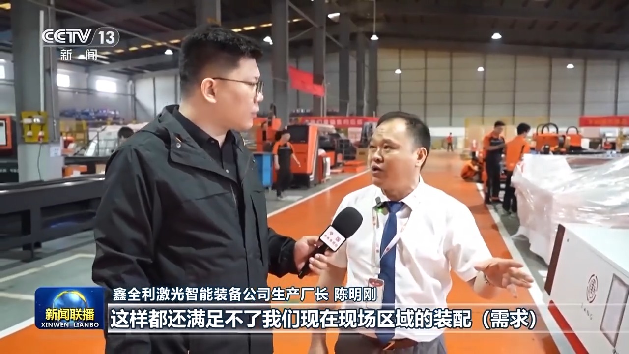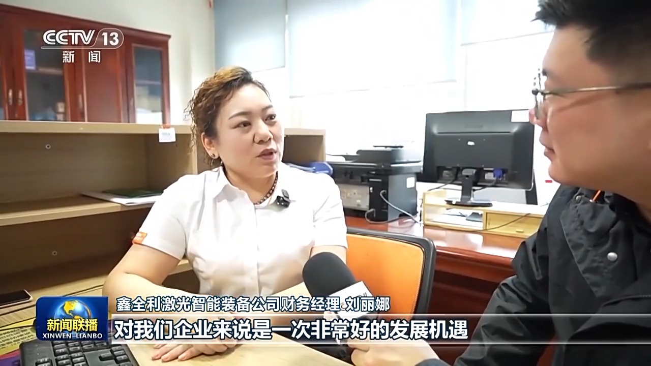 鑫全利激光智能裝備公司財(cái)務(wù)經(jīng)理 劉麗娜:大規(guī)模設(shè)備更新行動(dòng),打開(kāi)了下游的需求端,對(duì)我們企業(yè)來(lái)說(shuō)是一次非常好的發(fā)展機(jī)遇。