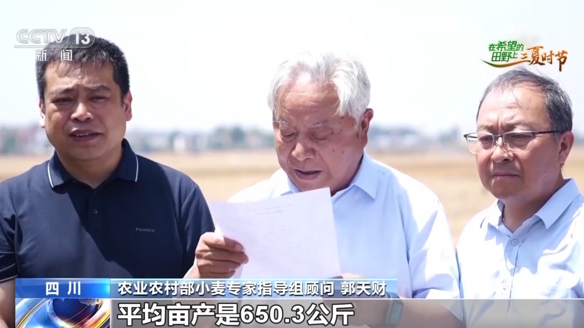 農(nóng)業(yè)農(nóng)村部小麥專家指導(dǎo)組顧問 郭天財(cái):我們按照加權(quán)平均,平均畝產(chǎn)是650.3公斤,應(yīng)該說(shuō)創(chuàng)造了四川省百畝連片的最高紀(jì)錄。