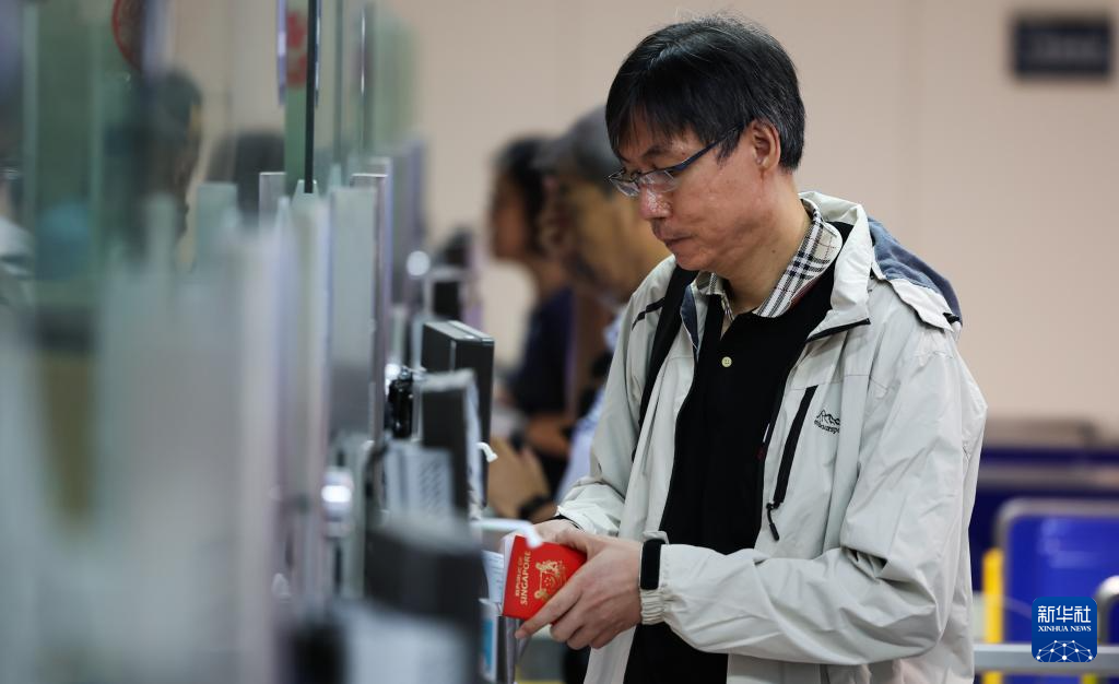 5月9日,入境旅客在??诿捞m邊檢站辦理邊檢手續(xù)后通關(guān)。當(dāng)日,記者從??诔鋈刖尺叿罊z查總站了解到,擴大59國人員免簽入境海南事由政策自今年2月9日正式實施以來,入境海南的免簽外籍旅客已超7.5萬人次,外籍游客赴瓊熱情被進一步激發(fā)。新華社記者 楊冠宇 攝