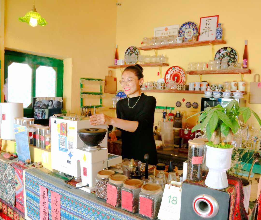 “這里的生活氣息深深打動(dòng)了我。”一次庫(kù)車(chē)旅行,讓張媛媛下決心留下來(lái)創(chuàng)業(yè)。她在熱斯坦歷史文化街區(qū)開(kāi)了一家咖啡館,色彩鮮明的裝修、時(shí)尚氣息的裝飾,使小店很快成為當(dāng)?shù)芈糜蔚男×咙c(diǎn)。