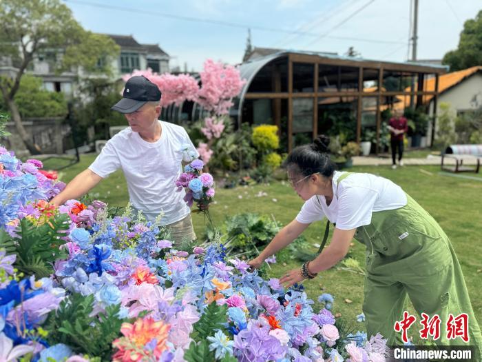 劉鳳娟(右一)在裝飾小院?!『技压﹫D
