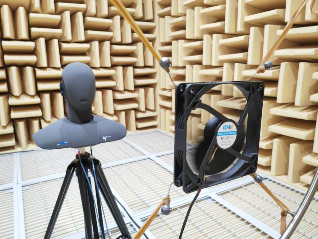 5月19日,晟輝科技實(shí)驗(yàn)室內(nèi),一款風(fēng)機(jī)正在接受噪音檢測(cè)。新華社記者謝?,?攝