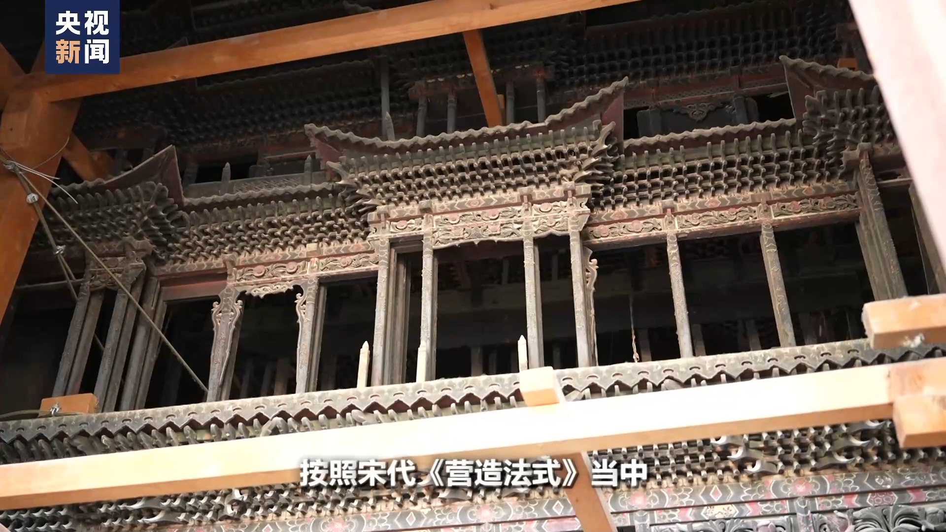 陜西省文物保護(hù)研究院保護(hù)修復(fù)一部副主任 張芳:他們當(dāng)時(shí)的反應(yīng)是非常驚訝,因?yàn)檫@種純粹的,沒(méi)有用一根釘子的榫卯結(jié)構(gòu)層層疊疊,在上面天宮樓閣的一個(gè)呈現(xiàn)。他們?cè)诜▏?guó)是完全見(jiàn)不到,他們也想象不到。