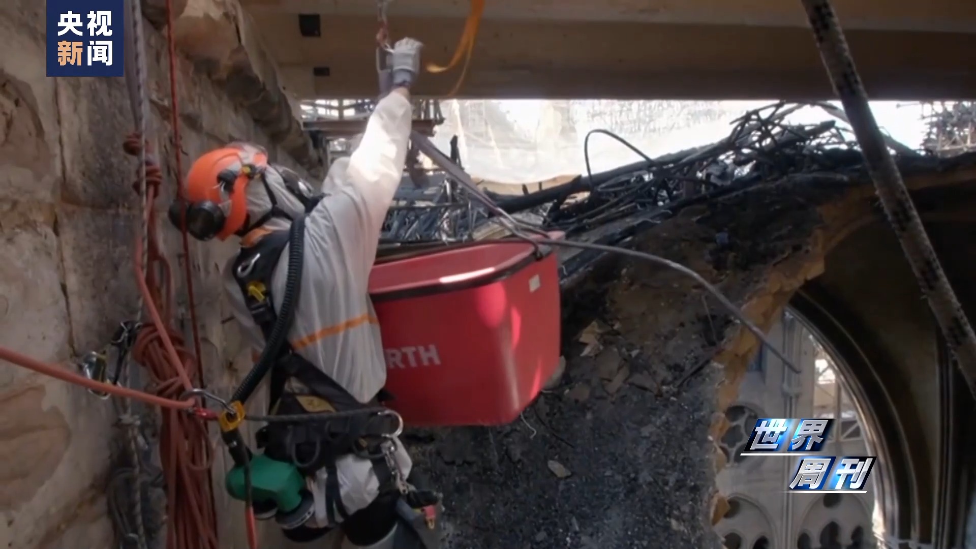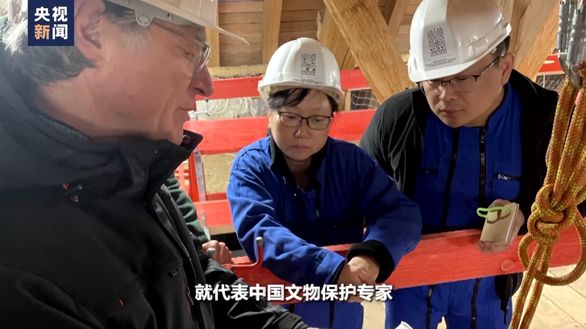 總臺(tái)記者 張誠(chéng):兩位專家是登上了巴黎圣母院什么位置?
