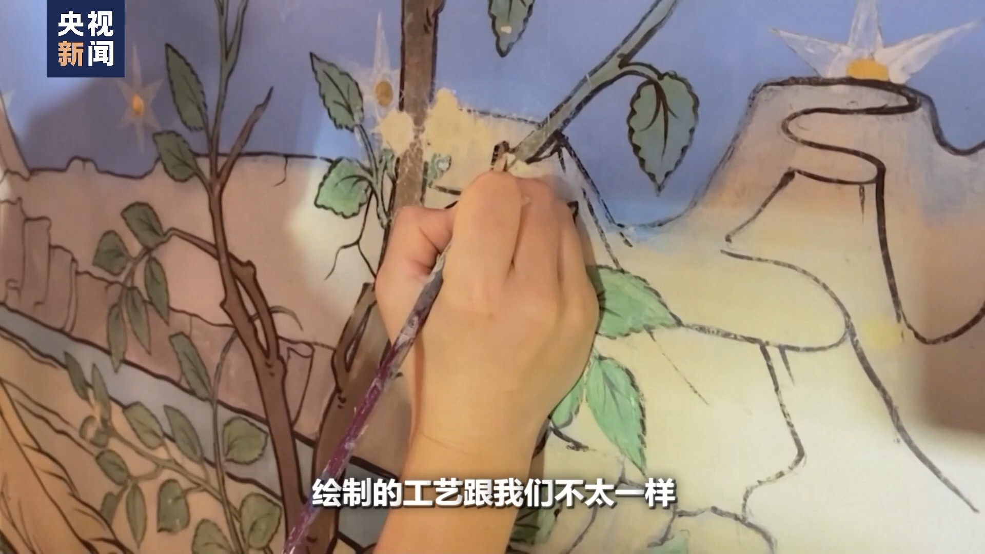 他的壁畫(huà)跟我們不太一樣,因?yàn)樗菤W洲的壁畫(huà)教堂壁畫(huà),他繪制的工藝跟我們不太一樣,我們把它一般叫濕壁畫(huà)。咱們國(guó)家相當(dāng)于是干壁畫(huà),兩個(gè)壁畫(huà)的工藝就不太一樣,修復(fù)過(guò)程中也不一樣,我們可能更多交流這樣的過(guò)程。
