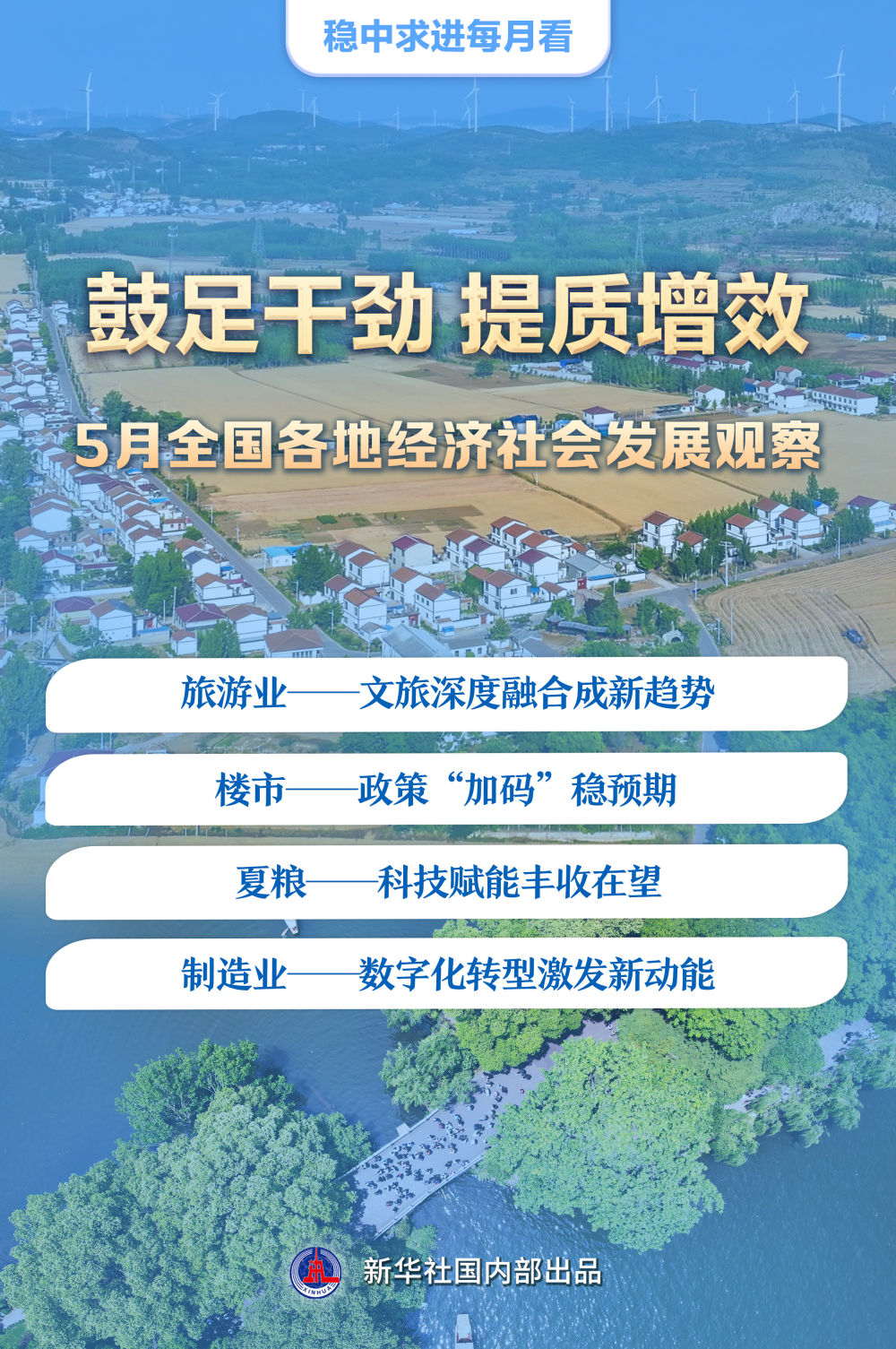 春歸夏至,萬物生長。文旅融合向“深”挺進(jìn),樓市政策優(yōu)化調(diào)整,夏收以科技賦能,制造業(yè)數(shù)字化轉(zhuǎn)型提速……提質(zhì)增效成為5月全國各地經(jīng)濟(jì)社會發(fā)展的突出特點(diǎn)。