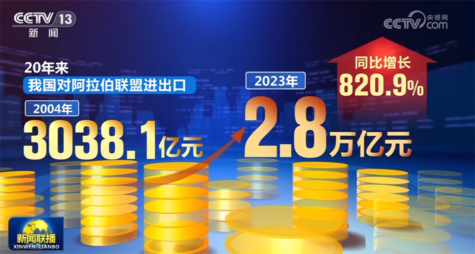 5月30日是中國(guó)—阿拉伯國(guó)家合作論壇成立20周年。據(jù)海關(guān)統(tǒng)計(jì),20年來(lái),我國(guó)對(duì)阿拉伯聯(lián)盟進(jìn)出口由2004年的3038.1億元增長(zhǎng)至2023年的2.8萬(wàn)億元,同比增長(zhǎng)820.9%。