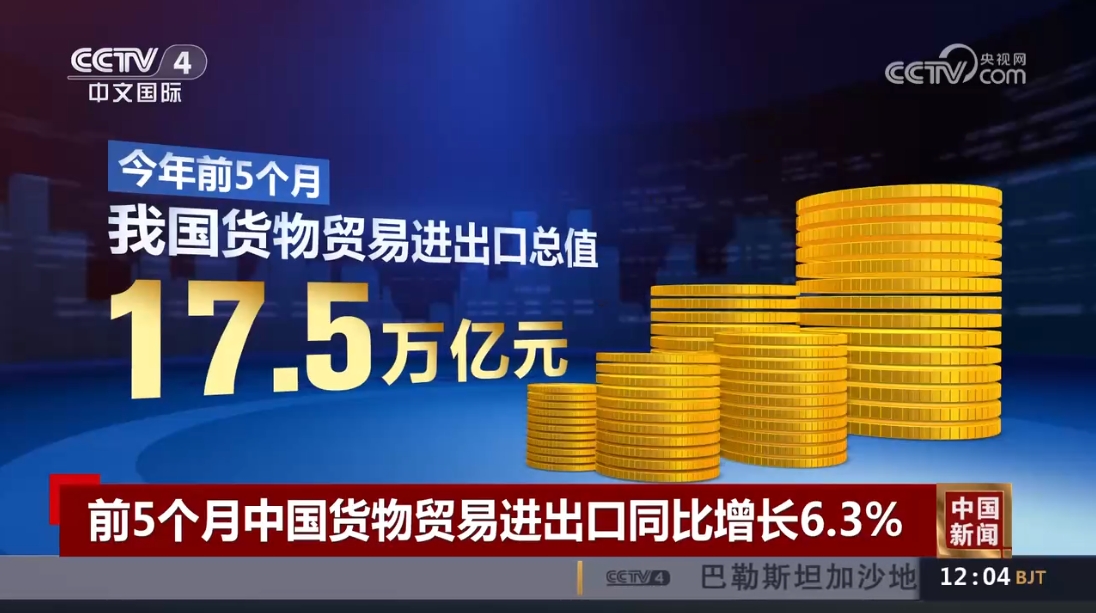 今天(6月7日),海關總署公布,今年前5個月,中國貨物貿易進出口同比增長達6.3%。今年以來,中國外貿向好的勢頭不斷鞏固。