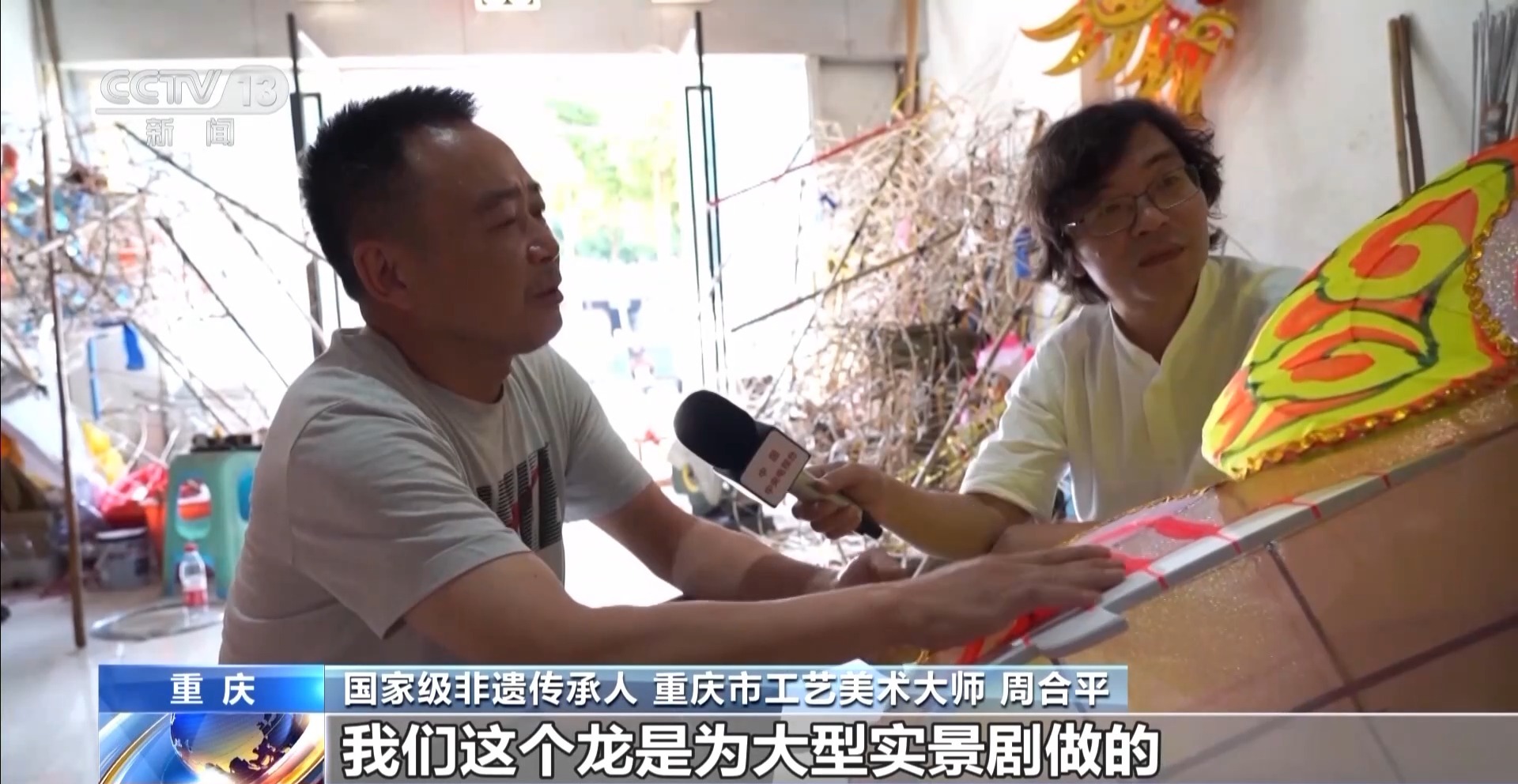 國家級非遺傳承人 重慶市工藝美術大師 周合平:我們這個龍是為大型實景劇做的,是一種夜光絨材質,是熒光色。